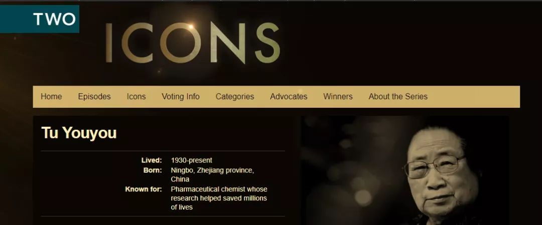 “偶像(ICONS)”栏目发起投票,全民参与选出大家心中“20世纪最伟大人物”。屠呦呦凭借抗疟药青蒿素和双氢青蒿素“打败”了斯蒂芬·霍金、马克斯·普朗克(德国物理学家,量子力学的创始人)等人,与发现了镭和钋的物理学家玛丽·居里、帮助人类理解宇宙的物理学家阿尔伯特·爱因斯坦、“计算机之父”阿兰·图灵这三位杰出的科学家一道,成为科学领域的候选人。