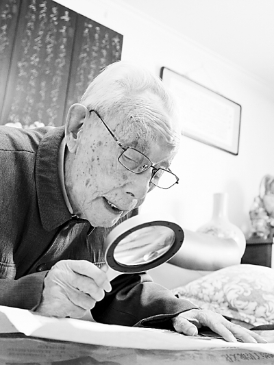 103岁的郭汉城在阅读资料 本报记者 郭红松摄/光明图片