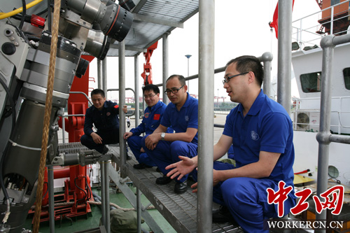 4月份,无锡天气开始暖和起来了,“深海勇士”进入水池调试阶段。由于“深海勇士”号国产化率非常高,很多设备都是国产首台套,在水池试验中暴露出了大量的电池兼容与干扰问题,祝普强带着团队开始了既要保障白天下潜试验,又要分兵与其它分系统负责人排查故障,优化系统的工作,晚上加班到十一二点几乎成为了常态。6月中旬,以控制系统为核心的水池试验结束,“深海勇士”号具备了海试条件。
