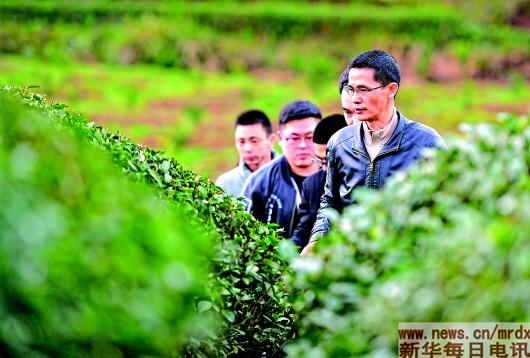 3月26日,在福建省武夷山市星村镇,首批科技特派员刘国英(前)带着学生们在茶园内查看茶树长势。科技特派员制度发端于福建南平。本报记者魏培全摄