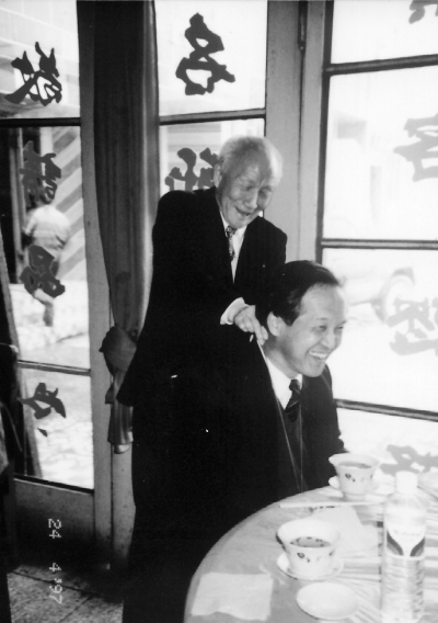 程耿东(右)与钱令希在一起,两位院士之间有一份浓浓的师生情。