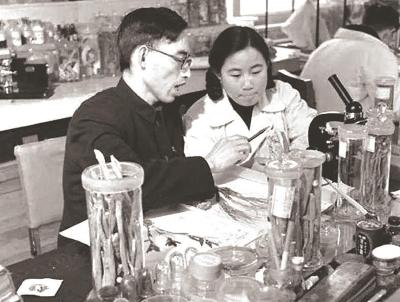 ◆20世纪50年代,屠呦呦与老师楼之岑一起研究药材。新华社发