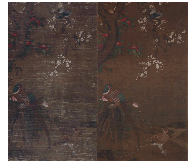 “第一件事情要了解作品,解读作者创作的初衷,是谁,什么时候,用何笔法画了这幅画,想要表达什么,它的精气神怎么体现;第二是解读材料,用什么纸或绢,什么颜料画出来的,每一个历史时期的书画材料都有其特点和特殊性,而且文物是不能取样的,所以更多时候要凭借眼睛和经验去判断,需长期的实操积累。”