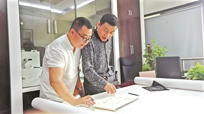 赵晔(右)和画家在讨论(采访对象提供)
