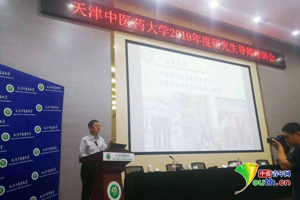曹洪欣在天津中医药大学2019年度研究生导师培训会上做报告。资料图