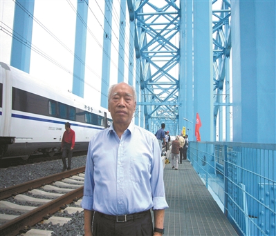 京沪高铁验收,沈志云在大胜关大桥桥面上。(翻拍)