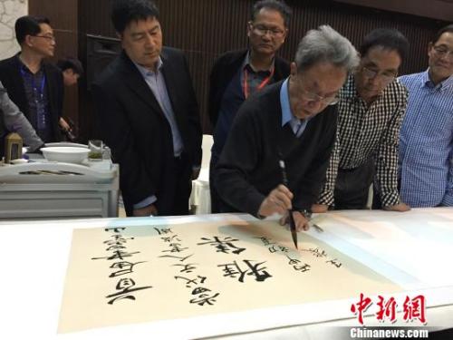 资料图:王蒙现场泼墨挥毫。李俊杰 摄