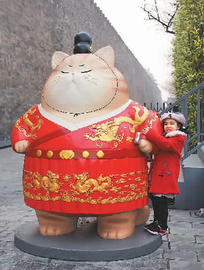 故宫神武门外宫墙边几只“御猫”吸引游客拍照。杜建坡/人民视觉