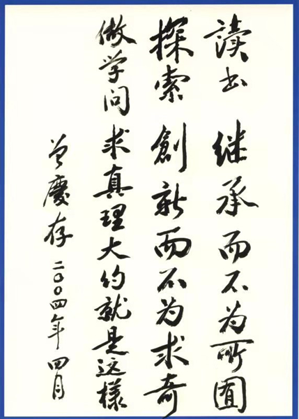 “爱祖国、爱科学、爱学生、爱自然。”这是曾庆存的同事与学生们对他的评价。写得一手好字、好文章。曾庆存忙时废寝忘食做研究,稍有闲暇咏物寄情,书写对祖国大好河山的热爱,用诗化的语言,将科学与艺术完美结合。