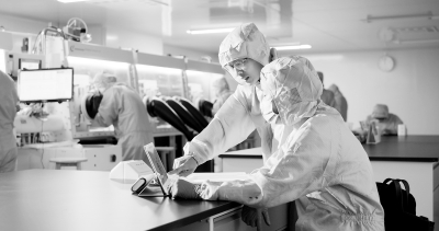 黄维团队成员在超净间里进行柔性电子器件制备。资料图片
