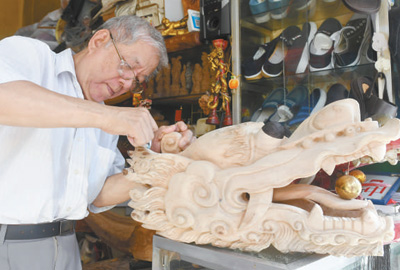 左文康感慨:“做龙头雕刻不仅是一门技术,更是艺术、是文化。”(记者 姜晓丹)