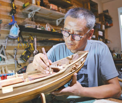 如今,付昆祥复制的郑和船队做到了第七版,1∶100的郑和船队模型已经做了50多艘。完成剩余的船模,还要两到三年。付昆祥的心里还藏着一个“航海梦”——“全部完成后,我要沿着郑和船队曾经的足迹巡展,重现当年波澜壮阔的航海之旅。”(记者 叶传增 摄影报道)