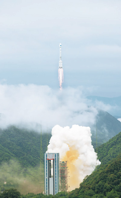 6月23日上午,北斗三号最后一颗全球组网卫星在西昌卫星发射中心发射后成功布阵太空。新华社记者 江宏景摄