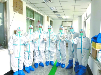 每次查房,长时间穿着防护服,已不再年轻的童朝晖常感到憋气、难受,但他从不会因此少看一个病人,忽略任何一个细节。甚至床单元的摆放,他都会过问。