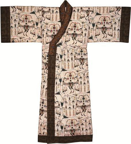 复织的马山楚墓出土文物N10人凤鸟花卉纹绣浅黄绢面绵袍