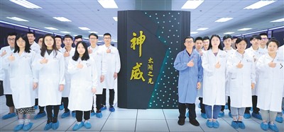 “神威·太湖之光”超算应用团队与“神威”超级计算机合影。 国家超级计算无锡中心供图