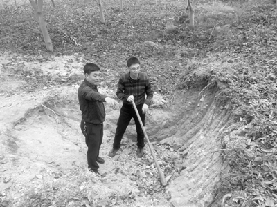 熊佰炼(右)干起农活来跟地道的农民没什么两样受访者供图