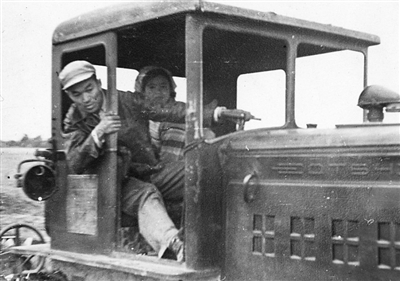 蒋亦元(左)驾驶拖拉机(图文由中国科协创新战略研究院采集工程项目办公室提供)