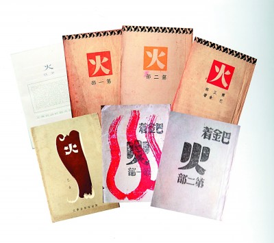 和众多作家一样,巴金最重要的武器是手中的笔,抗战时期他完成了长篇小说《火》。该书分三部,仅从《火》第一部就能够看出巴金是在怎样的环境下写作的:1938年5月广州,在敌机的不断轰炸中,巴金写下小说前三章,后来因敌机连续的大轰炸而中断写作。当年9月,他从汉口回到广州,续写了第四章,不久日军从大亚湾登陆向广州进发,巴金和朋友们离开广州。12月在桂林的大火中,巴金续写小说。1940年7月,蛰居“孤岛”上海的他,开始接着写,却又因租界里敌人的大搜查中断。后来,到了昆明,他才终于完成写作……从《火》最初出版到晚年重印,他对这部作品都不满意,认为在艺术上这是一部“失败之作”。然而,他又从未后悔写了这样一部作品,他认为,写这小说,为的是发散热情,宣泄悲愤,鼓舞勇气,巩固信仰,找寻未来中国的希望,“老实说,我想写一本宣传的东西”。(《〈火〉第一部后记》)在他看来,这是尽一位作家的责任,尽一位中国人的责任,在民族危亡之际,对此,谁都责无旁贷。