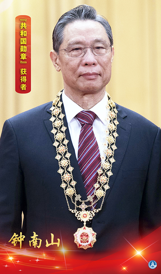 2020年8月11日,国家主席习近平签署主席令,授予84岁的钟南山“共和国勋章”,以表彰他在抗击新冠肺炎疫情进程中作出的杰出贡献。“共和国勋章”建议人选的公示称,在新冠肺炎疫情发生后,钟南山敢医敢言,提出存在“人传人”现象,强调严格防控,领导撰写新冠肺炎诊疗方案,在疫情防控、重症救治、科研攻关等方面作出杰出贡献。