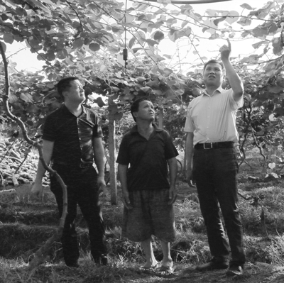 李荣同(右一)在果园 抚州市全媒体中心供图