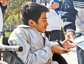 “我觉得身体的苦难是命运的选择,但是精神和信仰我们是可以选择并坚持下去的。为什么要把苦难经常挂在嘴边呢?一个身体上残缺、很苦难的人,他需要的不是一种关爱,最重要的是平等……” 所有人都注视着他。很早以前,就有医生预言他活不过两岁。这个生下来就患有世界性罕见疾病——成骨不全症的大男孩,叫刘大铭,今年19岁。这一天,他特意穿了一件黑色绿边的运动衣,打了一个黑色的领带,发型整整齐齐的。