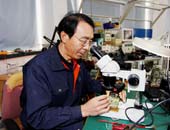 早上7点30分,因为还没有到规定的上班时间,此时楼层里还静悄悄的。只有杨才胜一个人窝在工作室中,这里堆满了他自主研发设计的各种实验设备。 杨才胜正琢磨着工作台上摆放的各种电气线路,他不时拿着专用放大镜查看,然后又紧锁双眉思考。“上班这些年,我每天都是7点半准时到岗。不为别的,这个时间思考特有效率,我都习惯啦。”