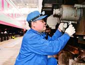 蒋师傅的集便专修班只有4个人,却要负责8对列车、近400个卫生间的检修。记者问:“最近是不是特别忙?”蒋明轶答:“我们包修的列车往返沈阳至广州,行程6000多公里,路程远、温差大,各种配件极易损坏,工作量随之加大。但是,请旅客放心,我们宁可自己脏点儿累点儿,也要让旅客体体面面、干干净净回家。”
