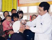 在河北省眼科医院,在张铭连的倡导下,有一个流传已久的传统——每年都抽调各学科优秀医生,组成志愿服务队深入全省各地,乃至省外身患眼疾的贫困患者家中义诊送药,驱散遮住光明的乌云。张铭连院长说,“近年来,我们开展了‘百万贫困白内障患者复明工程’、‘瑞霖眼科临床救治(狮子)基金’、‘善行河北——光明梦·万里行大型义诊志愿服务’等一系列大型惠民爱心救助行动。据不完全统计,近5年来,全院为贫困患者捐款近100万元,减免医疗费用600余万元。” | |