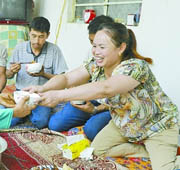 尤良英的妈妈其实是她的婆婆,今年78岁了,有着一双灵巧的手,只要看一眼脚,她就能做出一双合脚的布鞋。看到麦麦提图如普·穆萨克把自己家的活当成他家的活来干,尤良英的丈夫和婆婆打心眼里接受了麦麦提图如普·穆萨克。衣服破了,免费给补;麦麦提图如普·穆萨克开夜市需要人手了,全家上阵帮着称秤、收钱。