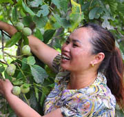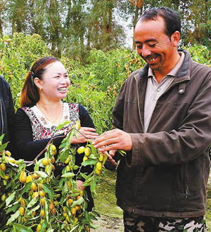 尤良英学来的好技术,第一时间就教会麦麦提,包括经营果园、种植红枣等新品种。2014年,麦麦提在7亩多核桃、12亩红枣的果园里收成5万元,加上9万元打工收入,他脱贫了。
