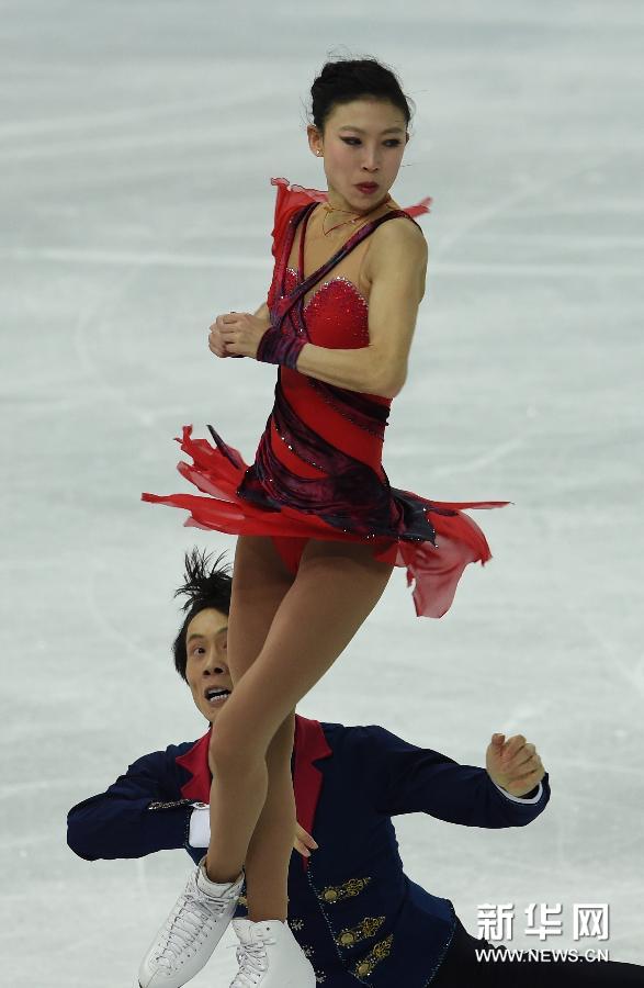 2月12日,中国选手庞清(上)/佟健在自由滑比赛中。 新华网记者王毓国摄
