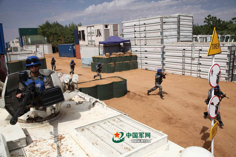 首批赴马里维和警卫分队开展防卫演练,紧急支援遭袭区域。杨华文摄