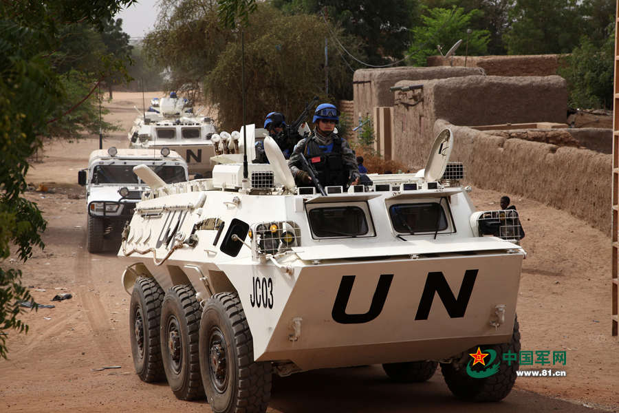 首批赴马里维和警卫分队官兵正在执行护送任务。杨华文摄