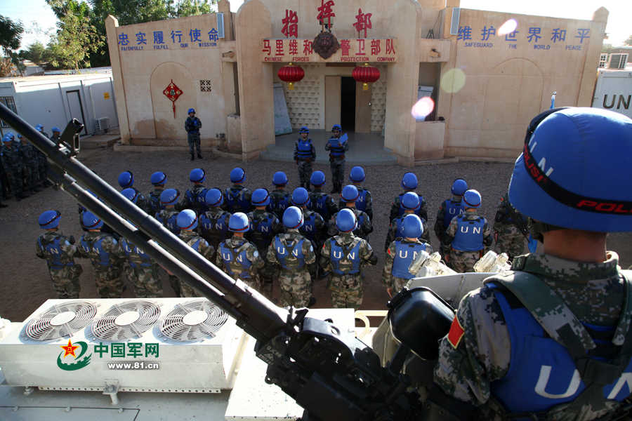 首批赴马里维和警卫分队举行接防战区司令部的出征仪式。杨华文摄