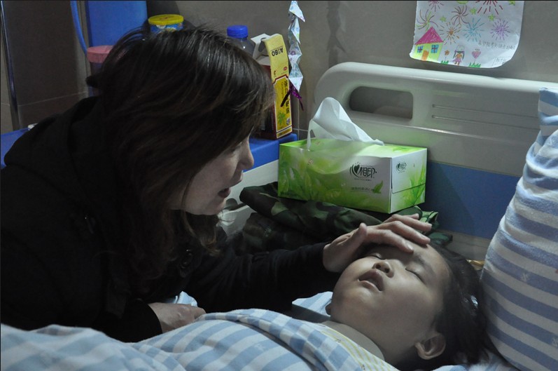 奶奶在病房中看望小孝天。图片来源:荆州新闻网