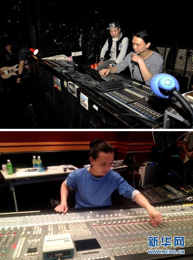 27岁的杨冬2009年至2013年在日本留学,学习录音制作,2013年回国在MAO俱乐部担任调音师兼副店长。“我觉得‘海归’是个中性词,不应有太多的色彩。早期的海归一般都是学习出类拔萃或家境不错的人,但后来逐渐成了贬义。我相信随着国家的经济发展,越来越多的留学生出国学习先进的东西再带回国内,推动我们国家的进步。”上图为4月16日,杨冬(右)在北京MAO俱乐部为表演的乐队调试音响;下图为2013年6月1日,杨冬在日本东京音乐学校的录音室里调音(资料照片)。