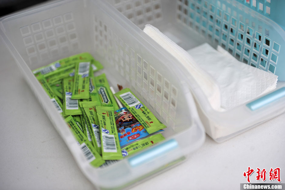 几位年轻人还为排队等候的顾客准备了免费矿泉水和遮阳伞,为了方便附近的上班族,小店还提供了口香糖。中新网记者 金硕 摄