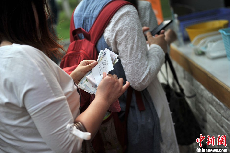 图为交完钱等候领馍的顾客。中新网记者 金硕 摄
