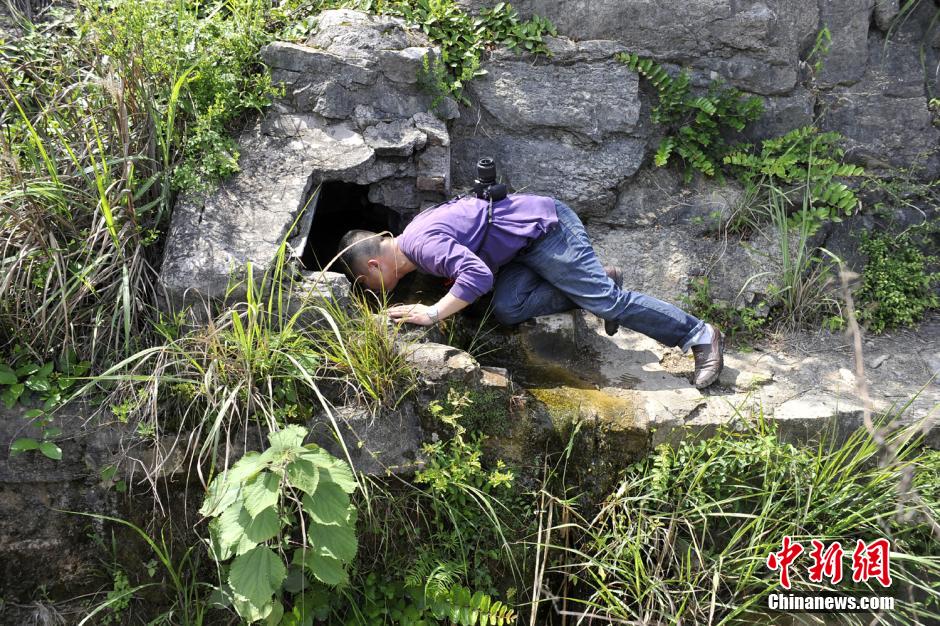 张志辉在前去给农户进行田间指导的路上口渴,趴在一处山泉水处喝水。邵颖 摄