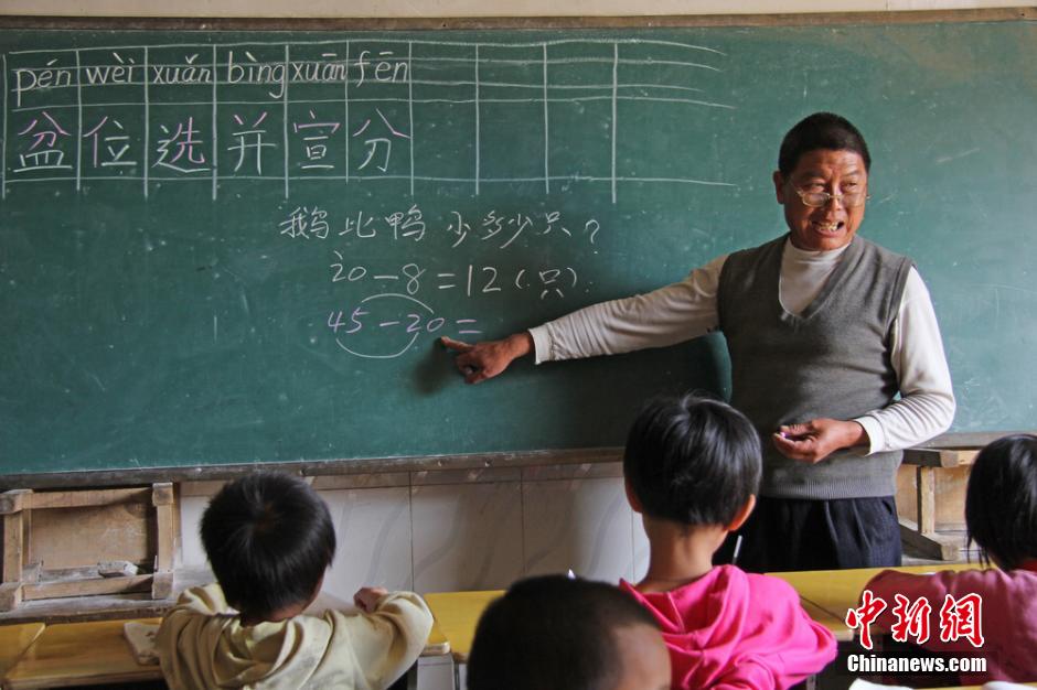 孙玉光是全科老师,教完语文再教数学。何红福 摄