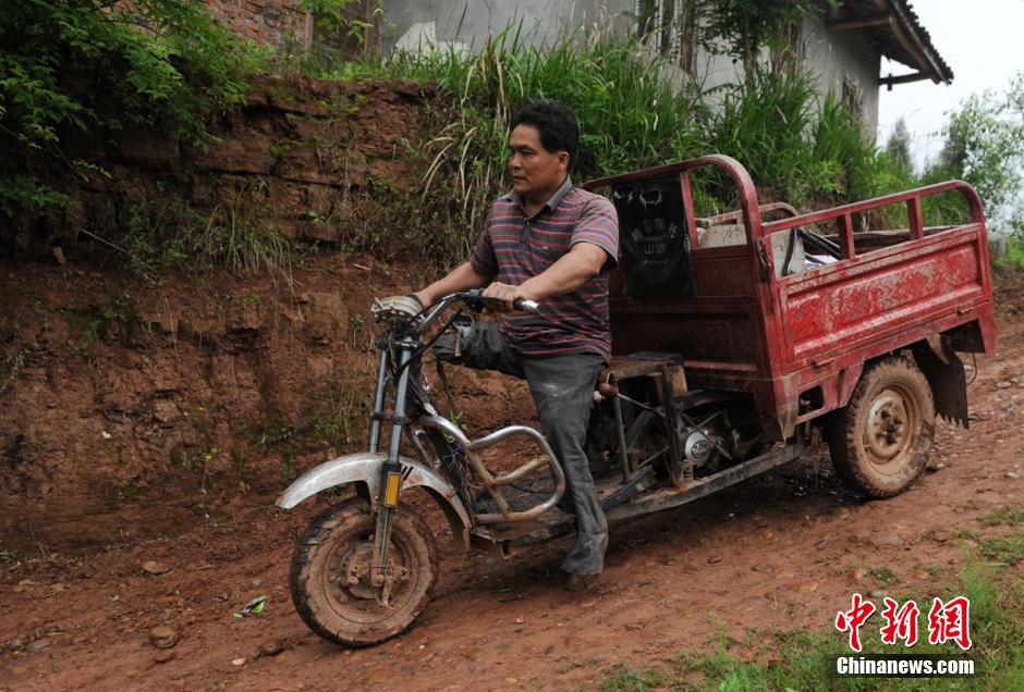 李杰文骑着自己改造的三轮车给邻居们送物资。刘忠俊 摄