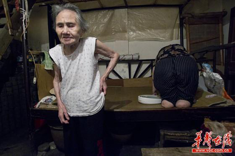 杨玉辉母女俩的家,隐藏在长沙繁华都市深处。在幸福桥社区住了近一个世纪的家里,九旬老人王仲莲60年如一日地照顾重残“无脚女儿”杨玉辉,用言行践行母亲责任、用一生书写母爱光辉。60年来,王仲莲的时间都是围着女儿转的,每天早晨,她起床第一件事就是帮女儿穿衣,洗脸,喂饭,图为老人照顾女儿如厕,将坐便器放在床上。