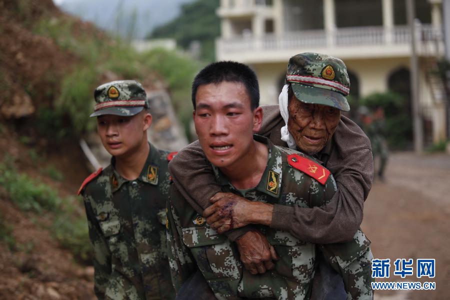 鲁甸6.5级地震废墟上的最美身影 用双手托起生命和希望(高清组图)