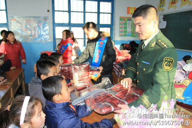 每次去看望孩子们,范尉都会背着两个鼓鼓的背包,里面装满了他和老师、同学搜集的爱心物资。细心的他还会带上卷尺,测量孩子们的身高、脚长,以便寻找适合他们的衣物和鞋子。范尉登记了160多个孩子的信息,已积累了三个笔记本。孩子们亲切地叫他“湖南哥哥”。“第一次见到这个湖南小伙,感觉挺震撼。能来一次已经很不容易,他还坚持每年都来。”如今,塔城阿西尔达斡尔民族乡中心小学的孟凡领老师和范尉成了好朋友。图为@走遍新疆Tamerlane 所发布范尉和他帮助的孩子们。