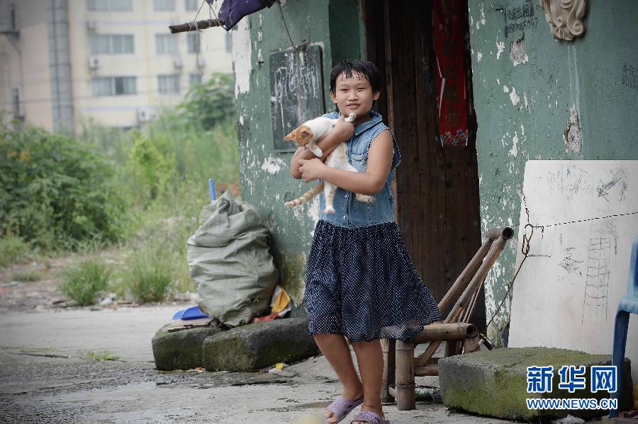 14岁的女孩刘静来自江苏盐城农村,父母在上海收购废品多年,放暑假后她和所有的“候鸟”一样,从老家来到上海与爸爸妈妈一起生活。刘静一家租住在上海闵行区临近拆迁尾声的城中村蒋家塘,这里既萧条又脏乱,村民们大多已搬离,剩下的是为数不多的外地务工人员,因为房租低廉而选择继续租住在此。两个多月来,父母早出晚归,刘静帮着洗碗、做饭、整理废品等,为父母分担一些力所能及的事务。大部分时间,刘静独自在村子里玩耍,一只被她取名为“阿黄”的流浪猫,成为她形影不离的好伙伴。暑假即将结束,刘静又该收拾行囊回老家上学。在她看来,能与爸爸妈妈一起生活的这两个月,是一年中最为快乐的时光。 新华社发(赖鑫琳 摄)