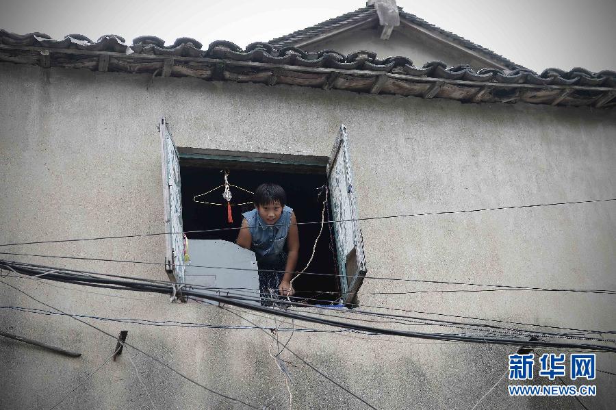 图为8月25日,刘静从屋子里探出头来看热闹。