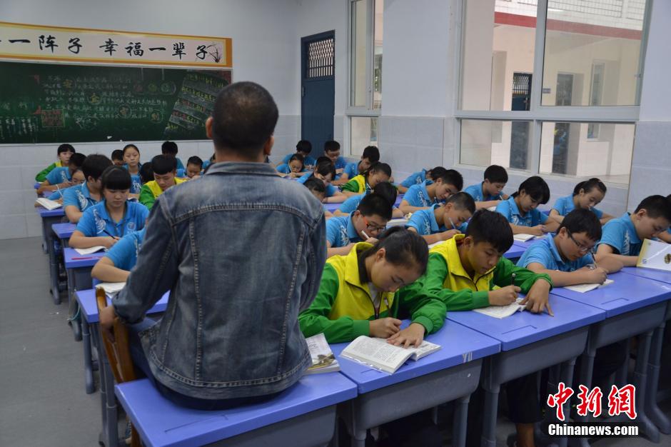 9月1日,开学第一天,四川省泸州市第七中学的教室里,詹光伟老师只能坐在课桌上授课,细心的同学发现,老师的手已经很少抬起。在刚刚过去的暑假里,一项名为“冰桶挑战”的公益活动传遍全球。詹光伟便是该活动的主角——运动神经元进行性肌肉萎缩症患者,俗称渐冻人。21年前的今天,意气风发的詹光伟迈出大学校门后正式踏上讲台。从独立行走到搀扶挪动,再到今天的寸步难行,他人生所有的时光和美好都在这里。图为詹光伟坐在课桌上上课。图为詹光伟正在上课。中新社发 周亚强 摄