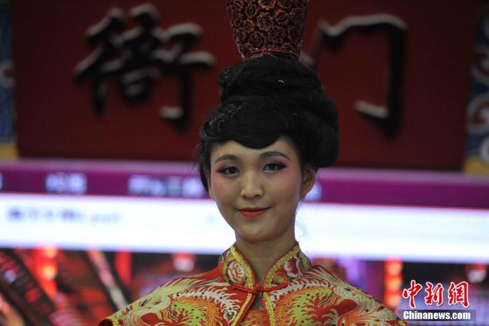 9月8日,第十届海峡旅游博览会上的美女吸引参会者的目光。作为目前大陆唯一面向两岸及港澳四地旅游业界的品牌盛会,第十届海峡旅游博览会当日在厦门正式开馆。王东明 摄