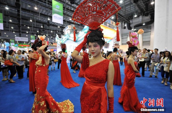 9月8日,第十届海峡旅游博览会上的美女吸引参会者的目光。作为目前大陆唯一面向两岸及港澳四地旅游业界的品牌盛会,第十届海峡旅游博览会当日在厦门正式开馆。王东明 摄(刘佳 连品洁)